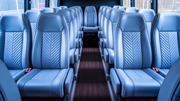 A popular rental for events and small gatherings, the 28-passenger mini bus can come with reclining seats and personal climate control. You can also choose additional features, like a PA system or on-board restroom.